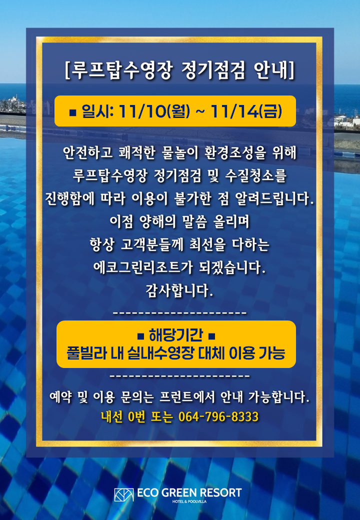 루프탑 수영장 정기점검 안내